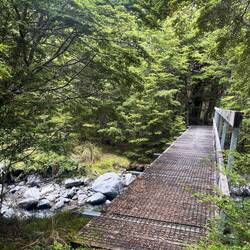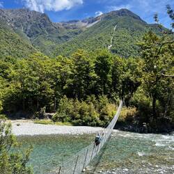 I dag gik det videre mod en gangbro ved siden af en trafikeret vej og en flod. Her kunne man slå sit telt op, inden det dagen efter ville gå videre op mod Goat Pass, og to dage senere ville man ankomme til Arthur’s Pass.