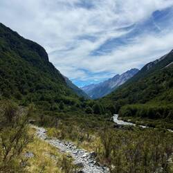Today we continued towards a footbridge beside a busy road and a river. Here, it was possible to pitch a tent, before heading up towards Goat Pass the following day, and two days later arriving at Arthur’s Pass.