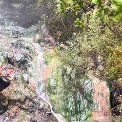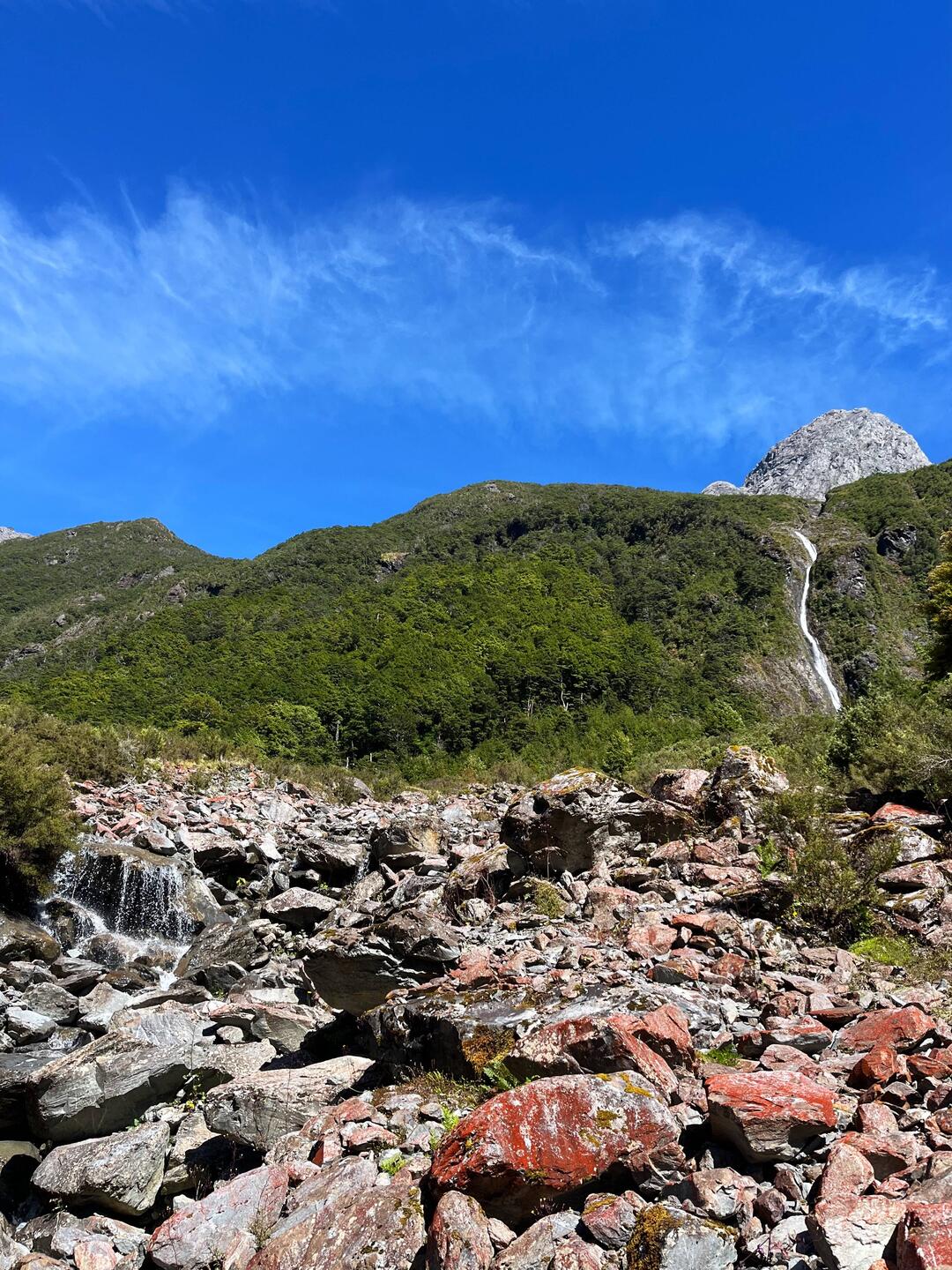 Along the way, next to a waterfall, there was a hot spring where we stood in the water for about 10 minutes, as the many sandflies quickly started attacking us. The water was very hot, and it was fascinating to experience.