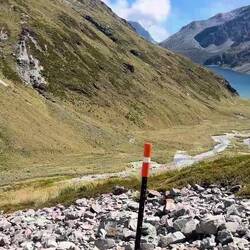 Most of the track had been washed away, so there weren’t many markers to follow today. As soon as the track disappeared, the only option was to walk along the river, which was quite frustrating, as the walkable side kept changing and the river therefore had to be crossed countless times.