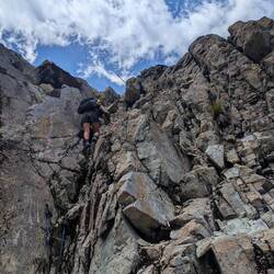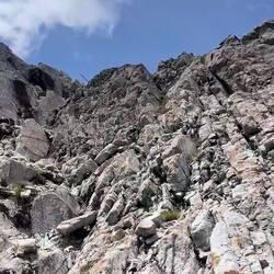 Efter lidt over to timer var jeg endelig kommet til toppen, og Svea ventede på mig, da vi sammen ville gå nedad, som var beskrevet som til dels meget stejl. Hvilket igen var noget, vi havde prøvet før, men denne gang passede beskrivelsen overhovedet ikke til de første 100 meter nedad, da det ikke havde noget med vandring at gøre, men mere fri klatring!