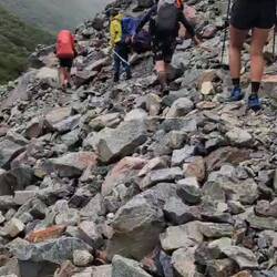 På toppen havde vi set en helikopter lande og flyve væk længere nede fra bjerget, og vi vidste derfor, at en af dem, der kort tid forinden var gået nedad, var blevet hentet med helikopter og fløjet ud. Det gjorde os derfor begge lidt ekstra nervøse for, hvad der ventede os. Senere fandt vi dog ud af, at det heldigvis ikke havde været så slemt, men “blot” et knæproblem.