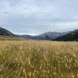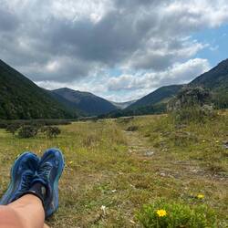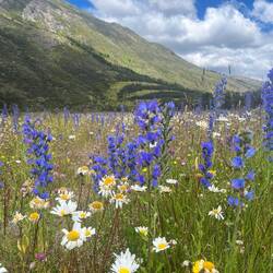 Svea and I walked together with the three others we had been seeing almost every day since Richmond. The day included countless river crossings, and after more than 20 crossings, I gave up counting them. The landscape opened up with beautiful flowers along the rivers and mountains in the background, making it an incredible place to hike through.