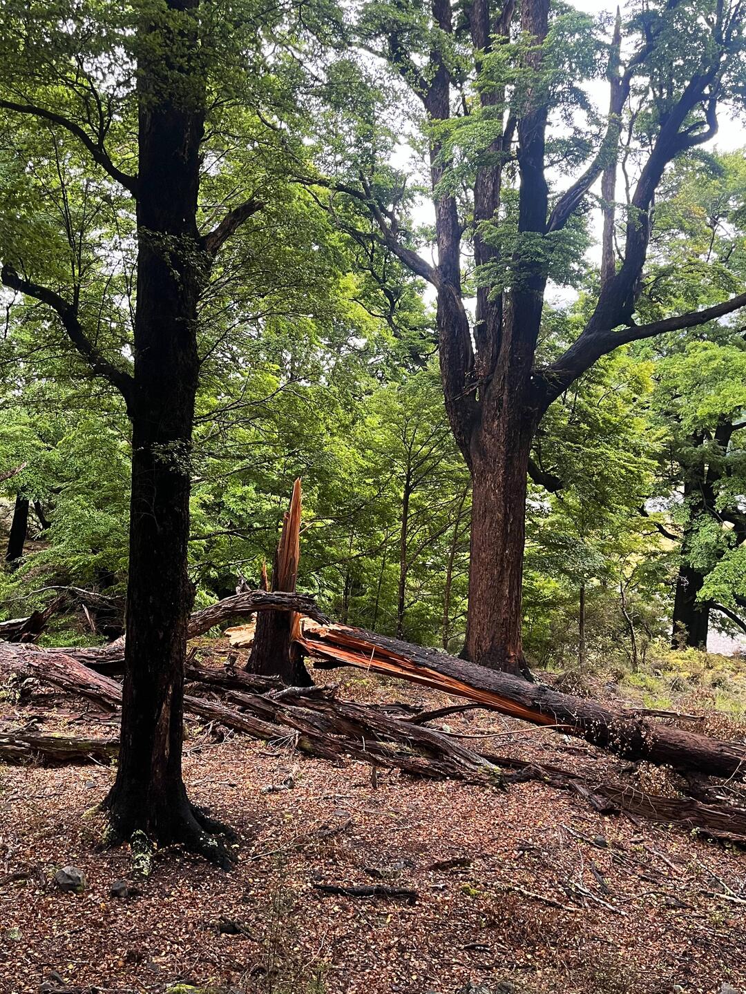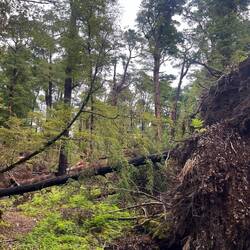 We started out by heading back into the forest along the river, where much of the original track had been washed away by the past few weeks of rain and strong winds. As a result, we had to take several detours, which once again involved many fallen trees and a lot of mud. The fallen trees had either been ripped out of the ground or looked as if they had been blasted apart by lightning.