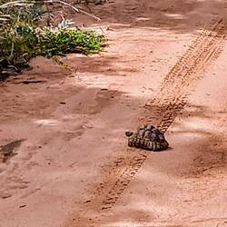 Auf sandigen Holperwegen erkunden wir den Busch auf der Sucheもっと詳しく