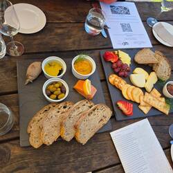 Zwei Weissweine und einen roten Wein degustiert. Gmündi Wasser und er hat die Käseplatte organisiert 😊
