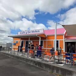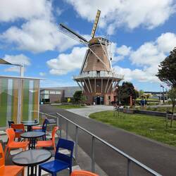 Eine echte holländische Windmühle und dazu ein Cafe. Alles ist auf holländisch angeschrieben und sie verkaufen Snoepjes, Dropches, Clockches, Hagelslag und sonstige Artikel. 😊