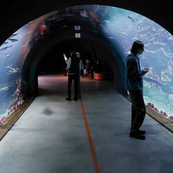 Die Teile der Ausstellung wechselten sich immer wieder mit Aquarienabschnitten ab.