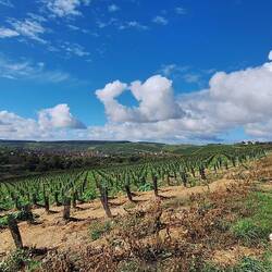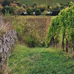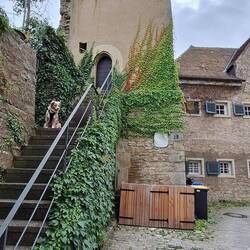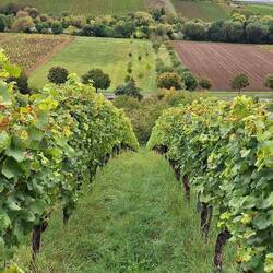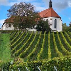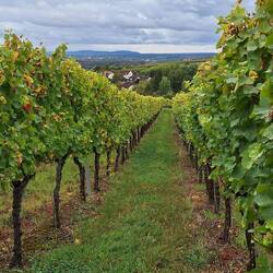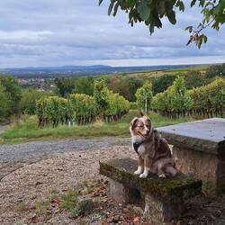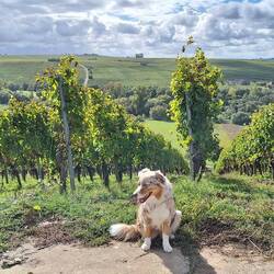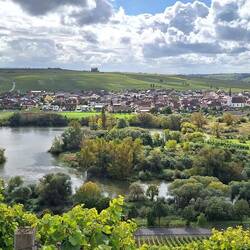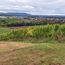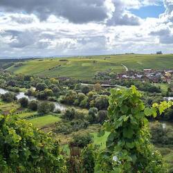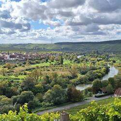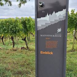 Shari und ich starten den Tag mit einer Wanderung durch die Weinberge. Der Aussichtspunkt auf die Mainschleife ist unser Ziel. Bei relativ gutem Wetter, Sonne-Wolken Mix, macht es richtig Spaß.