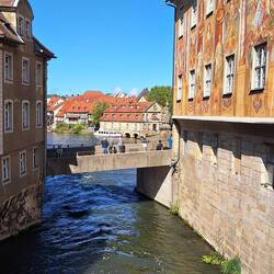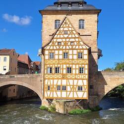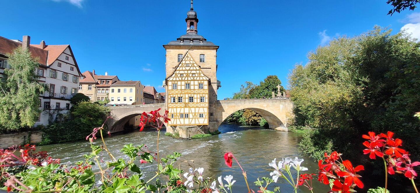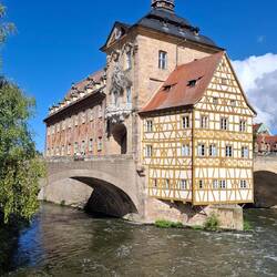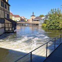 Da es von Hirschaid nach Bamberg nur 12 Kilometer sind, sind wir früh auf dem Stellplatz ,auf dem um diese Uhrzeit noch sehr viele Plätze frei sind.