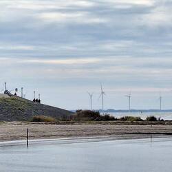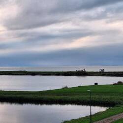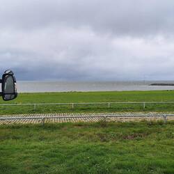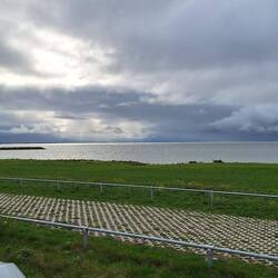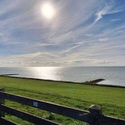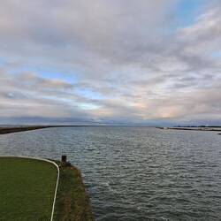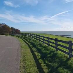 Wir fahren über den Markerwaarddijk , links das Markermeer und rechts das Ijsselmeer. Mitte des Damms machen wir einen Zeischenstopp und schauenLæs mere