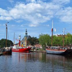 Unser heutiges Ziel ist Emden. Der Stellplatz im Hafen ist voll.