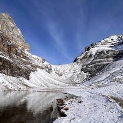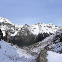As we rested and had a snack we watched a golden squirrel running around us. I was quite surprised that the squirrel would be this active in the cold weather. After a short break we continued back towards Larch Valley before turning off the track towards Eiffel Lake. The track towards Eiffel Lake walked in the valley of the 10 peaks. It was a relatively flat walk and we didn’t require our ice cleats.