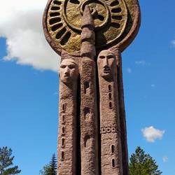 Endlos gerade Strassen, Hügel und Täler, Schamanenstätten, Kühe auf der Strasse. Mit der Fähre vom Festland auf die Insel. Und dann: SCHOTTERPISTE!!!!