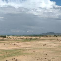 Nun stehen wir an der Düne - schon seltsam, mitten in der Steppe plötzlich eine Sanddüne, mit Oase, Palmen und Kamelen. Wir besuchen eine Nomadenfamilie und dürfen verschiedene KöstlichkeitenBaca selengkapnya