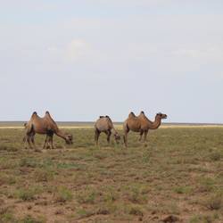 Von 1600m wieder in die Ebene - immer noch Kühe, Pferde, Ziegen und Schafe an der Strasse, viele totgefahrene Tiere. Nun wird es wieder flacher, die Steppe geht in Wüstensteppe über, das GrünLeia mais