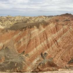 Ca. 40km westlich von Zhangye liegt der "rote Steingarten Chinas". Das UNESCO Weltnaturerbe sind Felsformationen aus rotem Sandstein und Mineralien. Am Morgen dachten wir noch das wir wegen des RegensLeia mais