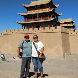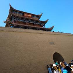 Die Festungsanlage ist ein Teil der grossen Mauer die hier in Jiayuguan beginnt (der westliche Teil). Gebaut während der Ming- Dynastie, sollte sie gegen die Hunnen schützen.