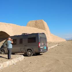 Unser Übernachtungsplatz liegt unterhalb eines Mauerabschnitts, mitten in einem touristisch- erschlossenen Parkplatzes. Und auch hier wieder: wie im Zoo werden wir begutachten 😬