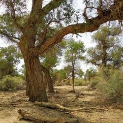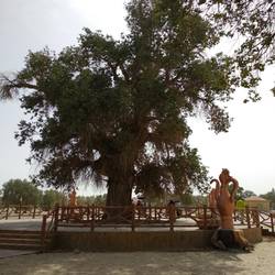Heute fahren wir weiter Richtung SW, an vielen Pappeln vorbei, auf dem Tarim Desert Highway bis TaZhung. Unser Übernachtungsplatz liegt in der Mitte der Wüste, was der Name "TaZhung" auf ChinesischLes mer