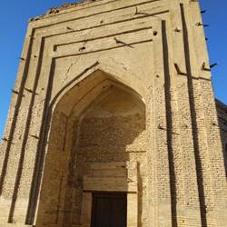 Weiter Richtung Norden sind wir nun in Konye-Urgench angekommen. Wir stehen auf einem Parkplatz direkt am Nedjmeddin Kubra Mausoleum. Dieser Ort ist in Turkmenistan auch als 360 bekannt, da hier 360Meer informatie