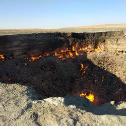 Es geht weiter Richtung Süden in die Karakum Wüste. Wir fahren nach Darwasa - dem " Tor zur Hölle". Dort haben die Sowjets bei Probebohrungen grosse Gasvorkommen gefunden. Jedoch spaltete sich dasLeggi altro