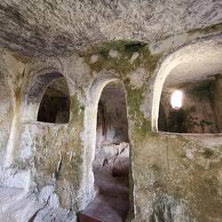 Ein steinzeitliches Höhlendorf mit 2 Höhlenkirchen aus dem 14.Jahrhundert. Heute ziehen Schafherden über das Gelände.