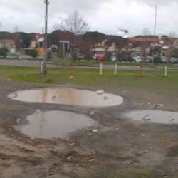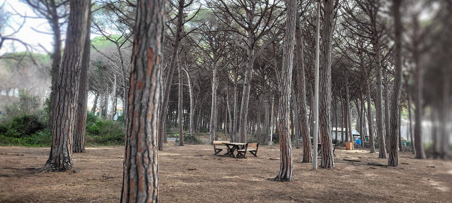 Südlich von Vada, wo wir schon oft waren, stehen wir nun in Mazzanta auf dem Schotterplatz am Pinienwald.
