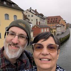 It's sad to think that our ship is docked and we're on our last shore excursion. We toured the beautiful town of Regensburg. It's one of the few towns mostly spared from bombing, so it's filled withOkumaya devam et