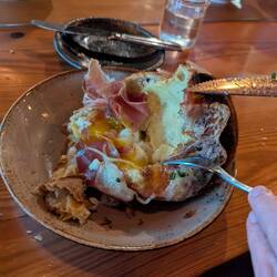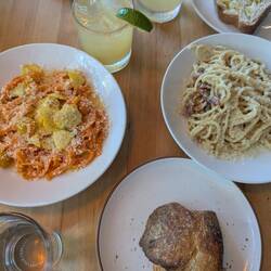 Took the 65 bus to lunch at Popina in the Carroll Gardens neighborhood. Small plates of homemade pasta and bread. Delish. Views of Manhattan from our table.