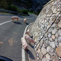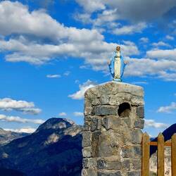 Die Straße Plav - Shkodrë ist hervorragend ausgebaut. In dem Tal dürfte die katholische Kirche "gewonnen" haben, wir entdecken kein einziges Minarett oder eine orthodoxe Kirche. Maria ist allgegenwärtig und als wir in die Ebene Richtung Shkodra See kommen begleitet uns eine Zeitlang ein Kreuzweg.