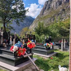 Die Landschaft ist atemberaubend schön und immer wieder bleiben wir stehen um das ein bisschen auszukosten. Wie die Menschen in diesen Siedlungen, die wir immer wieder hoch oben am Berg oder tief drinnen im Tal wohl leben? Wovon leben sie? Wir zweigen in Selcë ab zur Kirche und am Friedhof zeigt sich, dass die Leute wohl recht alt werden. Viele sind weit über 80, die da liegen. Es gibt Strom, aber kein Internet. Es gibt praktisch keine befestigten Straßen, Schulen sehen wir auf der ganzen Fahrt nur zwei. Und Behausungen, die wirklich nur mit Maultier, von denen gibt es ein paar, oder zu Fuß zu erreichen sind.