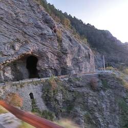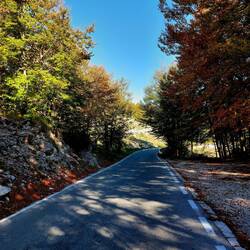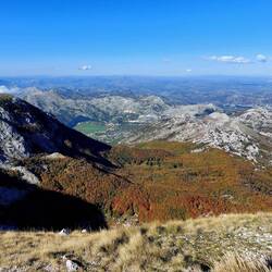 Von unserem schön ruhigen Standort mitten in der Pampas kommen wir in die kleine Kleinstadt Cetinje. Die Anordnung der Straßen erinnert mich an österreichisch- ungarische Straßendörfer mit vielen Alleebäumen, die kleine Häuserzeilen beschatten. Es ist sehr beschaulich. Wir trinken unseren obligatorischen Kaffee in einem Gasthaus, in der herrlichen Wärme. Franzi hat Nuss- und Mohnstrudel entdeckt und freut sich über den "Bramberger" Geschmack. In den Ländern hier wird alles mit Walnüssen gemacht, die man auch günstig kaufen kann. Es gibt Unmengen an Bäumen. Ebenso wurden an allen Ecken in Albanien Kastanien verkauft. Aber, das ist Geschichte und wird mir unglaublich fehlen. Das Montenegro, das wir im Norden erlebt haben, ist weit weg. Alles ist sauber, die Straßen sind gut. Den Menschen fehlt der offene, liebenswerte Charme der Albaner, der Kaffee ist ein bisschen weniger gut als in Kosovo, wo er ein Hammer war. In dieser beschaulichen, unpretentiösen Umgebung arbeitet der Präsident von Montenegro. Cetinje. Komisch ist aber Podgorice seit 1918 die Hauptstadt. Nach unserem süßen Frühstück, es ist schon 11 Uhr stellen wir das Auto in den Schatten, ziehen unsere Radklamotten an. 49km und 1000hm bergauf und wieder hinunter stehen an. Die 1000hm bringen uns in den Lovčen Nationalpark und wir werden von da oben das Meer und die Bucht von Kotor sehen. Stetig schlängelt sich das Asphaltstrasserl nach oben durch herrliche bunte Buchenwälder, rauhen Karst. Es ist genau richtig warm für den Anstieg. Ständig huschen Eidechserl herum, leider lassen auch viele ihr Leben unter den Reifen. Es ist wenig Verkehr, es ist eindeutig außerhalb der Saison. Auf der Strecke taucht ein Schilift auf und eine völlig desolate Leitner Pistenraupe. Das Hotel dazu nennt sich stolz Monte Rosa. Immer wieder gibt es mini Betriebe, die alles mögliche anbieten. Viele sind auch schon zu.