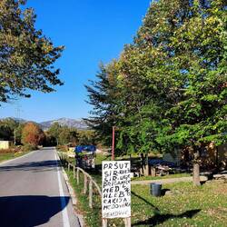 An sich haben wir den Tipp bekommen über Njegošin zurück zu radln, aber um 15 Uhr ist es schon so frisch, dass wir einfach den Aufstiegsweg hinunter sausen. Es ist brutal kalt, weil wir natürlich weder Mütze noch Handschuhe mithaben. Wir verlassen Cetinje um ein Plätzchen zum Duschen zu suchen und um Hautschi ein bisschen hinaus zu lassen.