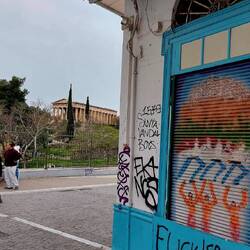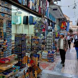 So gut plaziert wandern wir dann bergab zur Metrostation. Diese liegt an zwei Ministerien und es ist perfekt um in die Innenstadt zu gelangen. Wir besuchen den Syntagmaplatz- das Herz von Athen. Mit einem Simi und einem Dosenbier lassen wir das Treiben auf uns wirken. Nach der Wachablöse, einem Touristenspektakel aus dem 19 Jhd. vor dem Denkmal des Unbekannten Soldaten, schlendern wir durch die Fuzo. Ganz anders als in Patras sind hier keine elegant gekleideten Menschen unterwegs. Dafür gibt es wunderbare Straßenmusik und andere Schausteller. In Monastiraki 1000 kleinste Souvenirläden mit Riesenpenisen, Blauen Augen, Cäsar Loorbeerkränzen, Tavlibrettern, so viel Klumpert, daß einem schwindlig wird. Längere Zeit bewundern wir einen kleinen Buben, der eine Trommel spielt wie ein Außeririscher! Unglaublich! Er sollte sofort ein Engagement bekommen! Wir lugen durch die Zäune auf die Ausgrabungen der römischen Agora mit dem Hephaistostempel und meinem Lieblingsobjekt der Antike: dem Turm der Winde. An jeder Himmelsrichtung ist ein zuständiger Gott verewigt. Er stammt aus dem 1 Jhd vor Christus und wurde immer unterschiedlich genutzt. Darum ist er so gut erhalten. In der Plaka, im Gässchen Anafiotika, freuen wir uns an der besonderen Atmosphäre. Dicht gedrängt entlang des Stiegenaufgangs ein hübsches Lokal nach dem anderen. Trotz der frühen Stunde gibt es schon viele Abendessensgäste. Wir haben zufällig ein supertolles Plätzchen gefunden. Sie bieten traditionelles griechisches Essen, ohne Souflaki, Bifteki und Pommes an. Es gibt Favebohnen, Eintöpfe, saisonale Salate, Moussaka... es schmeckt uns wirklich ausgezeichnet. Am Weg zurück zur Metro am Syntagmaplatz bemerken wir viele zerschossene Scheiben. Im Moment finden hier ständig Demonstrationen gegen den harten Sparkurs der Regierung statt. Dabei kommt es manchmal zu Ausschreitungen. Bergauf zu unserem Domizil nehmen wir dann den Bus und wandern den Rest.Leer más
