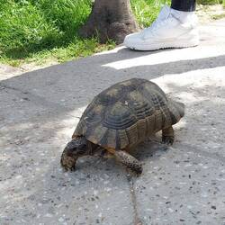 Angesichts der 3 tausend Jahre alten Sehenswürdigkeiten wird einem schon schwummelig. Mykenische Zeit, Griechen, Römer... wieviele Füße sind da schon herum gelaufen! Und wir stapfen brav nach. Nach einer schwierigen Entscheidung! Und zwar: Unser Herr Sauviech Kater hat beschossen, nicht, wie wir möchten, nach der Morgenexpedition nach Hause zu kommen, sondern er bevorzugt es im Gestrüpp zu bleiben und sich mit einem roten Kater anzufreunden. Also bleibt er draußen! Es gibt nichts Gefährliches rundherum. Wir wissen, dass er jederzeit das WoMo findet und so haben wir auch keinen Sonnenstress um ihn.