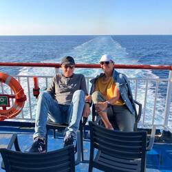 Ohne Probleme schummeln wir ihn ein und er fühlt sich gleich wohl in der Kabine. Lange sitzen wir in der Sonne und essen, relativ teuer, aber sehr gut in einem der Restaurants.Läs mer