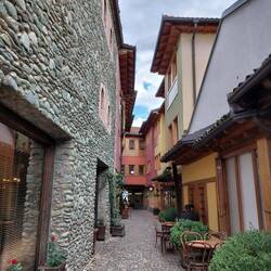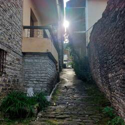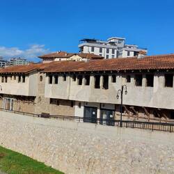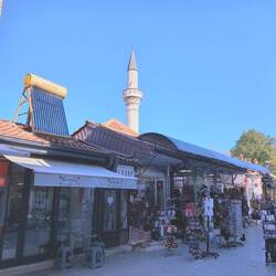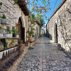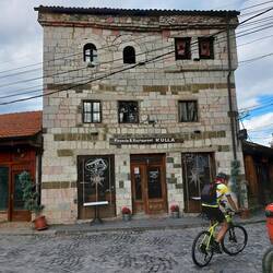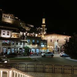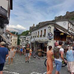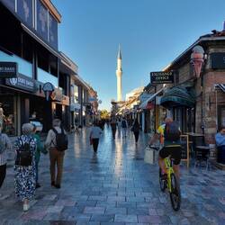 Wir radschlendern durch die engen Gässchen des Bazars. Vieles wurde der Gastronomie gewidmet, einige Teile werden gerade renoviert, ein bisschen abseits Unmengen von Fakeklamotten, Anzügen, Hochzeitskleider, Trachten, Schuhe. Lange nicht gesehen: eine chinesische Reisegruppe knipst sich ganz begeistert durch die Gassen. Ich werfe noch einen Blick in die mittelalterliche Tekke, die wunderschön renoviert wurde. Der islamische Bektashiorden ist ja in Albanien anerkannt, in der Türkei verboten. Es sind Sufis und sie haben definitiv eine Heimat in Albanien. Edi Rama wird, ich glaube, noch dieses Jahr einen, dem Vatikan ähnlichen Bektashistaat in Tirana "eröffnen".