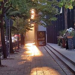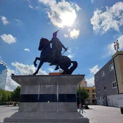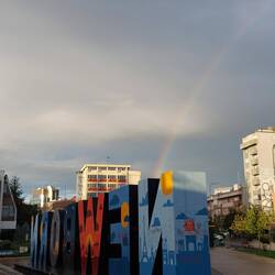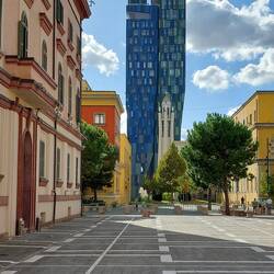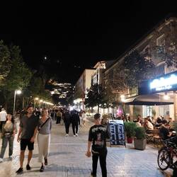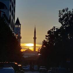Unglaubliches Wachstum und Potential sind vorhanden! Die Stadt ist viel lebendiger, gelebter als Tirana. Altes besteht noch und gut neben Neuem. Das ist nicht auf Architekturschönheiten ausgerichtet, sondern eher Zweckmäßigkeit. Die Lage macht es vielleicht auch aus, dass ich mir wie in einem Nest vorkomme. Das Zentrum ist am untersten Punkt, aber auf 600m Höhe, rundherum sind Erhöhungen. Viel Grün bestimmt die Stadtmitte. Der große Boulevard Nänë Tereza wurlt vor Menschen, die die Sonne genießen, die Lokale sind alle voll, Kinder springen und tanzen, es ist eine angenehme Leichtigkeit.