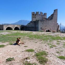 Die erste Nacht in der ich 1000% gut geschlafen habe. Der Spaziergang mit Howdie hat auch mir gut getan. Franzi jagt mich aus dem Bett, weil es zu nieseln beginnt. Schnell verräumen wir alles. Es ist warm und daher unproblematisch. Wir reisen kurzfristig ab, denn es scheint den ganzen Tag wechselhaft zu sein. Nach guten 15 Minuten überqueren wir die Grenze Albanien. Alles völlig unspektakulär. Über Ksamil, Sarandë, dem Syri I Kalter reisen wir zu einem kleinen Campingplatz nach Gjiroklaster. Ksamil bis Sarandë ist komplett verbaut, grauenvoll. Wie die wunderschönen Bilder der Strände entstehen? Es ist mir ein Rätsel! Weil die Vodafonkarte aus Ksamil nicht funktioniert, brauchen wir in Sarandë ein Geschäft. Immerhin haben wir 25 Euro bezahlt. Das kostet uns eine gute Stunde in dieser Partystadt. Es gibt extrem viele junge Leute. Die Preise sind auf jeden Fall europäisch. Überall wird gebaut. Entlang den Straßen stehen hunderte Bauruinen. Ob die jemals fertig werden?