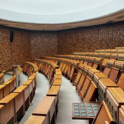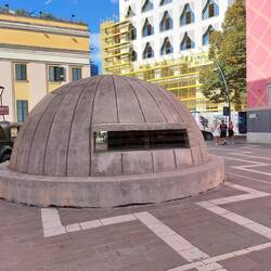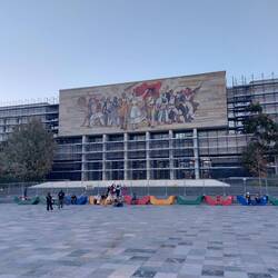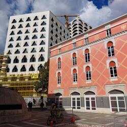 Das 2. ist die Bibliothek. Ein unglaublich symbolträchtiger Bau. Die weißen Kuppeln könnten die religiösen Symbole der Moschee oder orthodoxen Kirchen darstellen, oder der weißen typischen Kopfbedeckung der albanischen Männer. Die Metallverkleidung soll die Spitzen der Hochzeitskleider der albanischen Frauen repräsentieren.