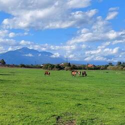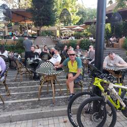 Bevor wir uns wieder auf den Rückweg machen, ich werde wieder wie ein Alien angeschaut in meinem Radlgwand 🤣, suchen wir uns einen hübschen Gastgarten. Nach einer hervorragenden Jause sausen wir durch die Felder wieder zurück. Wir haben beschlossen, dass wir heute noch auf den Berg hinauffahren. Das heißt morgen erwartet uns der höchste Berg Kosovos.