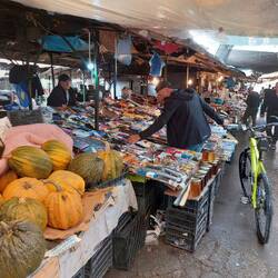 Wir lassen uns treiben, radln ein wenig umher, Franzi freut sich um einen nachgemachten Schlüssel um 3 Euro. Wir trinken warmen, aber sehr guten Wein. Komischerweise aus Frankreich. Der einzige den sie haben. Am Weg zum Basar stolpern wir über viel Sehenswertes. Vieles, das zum Weiterforschen anregt und so eng mit der Geschichte Europas verbunden ist, dass ich gar nicht anders kann als zu lesen, Schulwissen zu reaktivieren. Der Basar als "Anhängsel" oder Überbleibsl einer anderen Epoche in der Nachbarschaft der Großen Moschee ist unglaublich. Man könnte tagelang Fotos machen von diesen wunderschönen Köstlichkeiten. Oder auch tagelang sich durchkosten. Vermutlich gibt es nicht Vieles das es hier nicht gibt. Krass finde ich die Berge, völlig unsortiert, von gebrauchtem Gewand. Haufenweise Schuhe und Klamotten, die bei uns ein unrühmliches Ende im Container oder als Spende hatten.