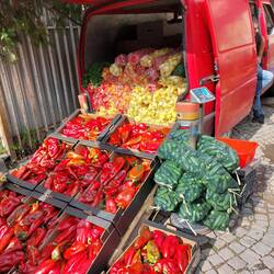 Natürlich können wir wieder nicht den Schuhen widerstehen. Franzi liebt das besonders weiche Leder. Die Schuhe werden hier, in den Nachbarländern und in der Türkei produziert. Ich möchte am Liebsten ganze Kübeln dieses herrlichen Weißkäses kaufen oder alle Sorten Birnen. Tomaten, Gurken- nicht so komisches Zeug wie bei uns- frisch vom Feld, noch mit Erde, oder diese grünen Gemüse, die ich nicht kenne!!!