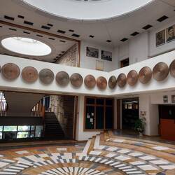 Irgendwie erinnert es an ein Wikingerschiff mit seinen 8 Dachstelen, die 8 Ethnien vertreten.