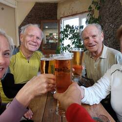 Heute geht's von Mohacs nach Baja. Nur 36 Kilometer, aber schön luftig. In Dunafalva gönnen wir uns wieder ein Bierchen, gemeinsam mit den Vorarlbergern.