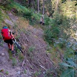 Heute nix mit Gleiten und Kurbeln... steigen, zahen, schieben, heben, bremsen, 2000x am Pedal das Wadl anschlagen.... Franzi legt nu a bissl mehr drauf, meine Ehre hält es aus, wenn ich mich höchstMeer informatie