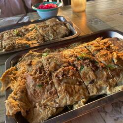 Watch sun rise - though obscured by clouds. Long day planned as limited options for accommodations. Seems to be a trend for us here in Malaysia. Fortunately it is flat and we have a good tail wind. Stop for lunch along the China Sea. Arrive in Pekan but can’t find our lodging. Go in circles until the host finally sends us a correct map. New food for dinner - Muetabak. Rolled pancake with tasty fillings.Leia mais