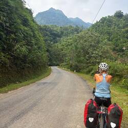 Get an early start to conquer what seems to be a long hill over pass. Turns out to be a moderate grade all the way and we just pedal ourselves up and over. Very nice cruise down, though have to dodgeRead more