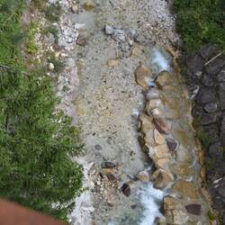 Beautiful morning as we roll out of the hay. Literally. Best breakfast thus far and on to the trail. River roars alongside us as we step between tree roots. Path varies between wet rocks, soft groundMeer informatie